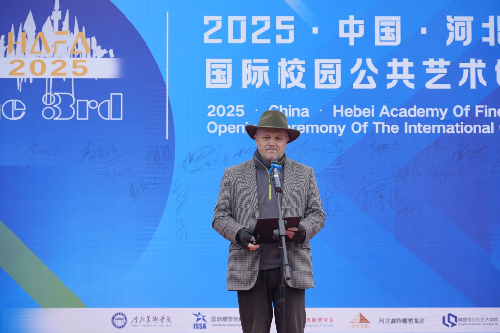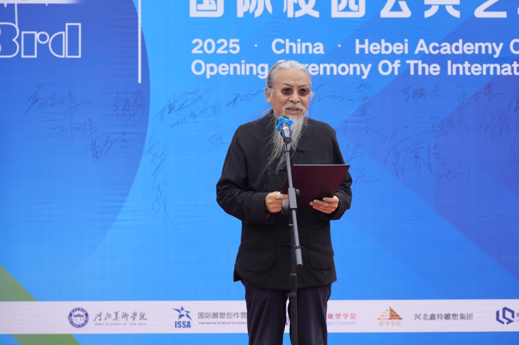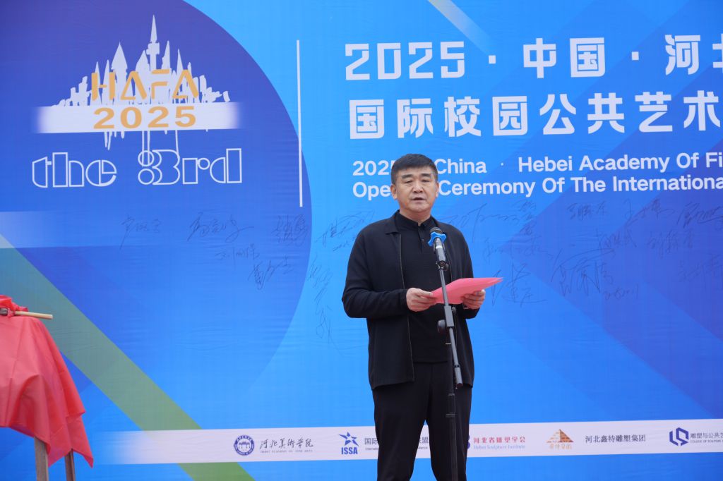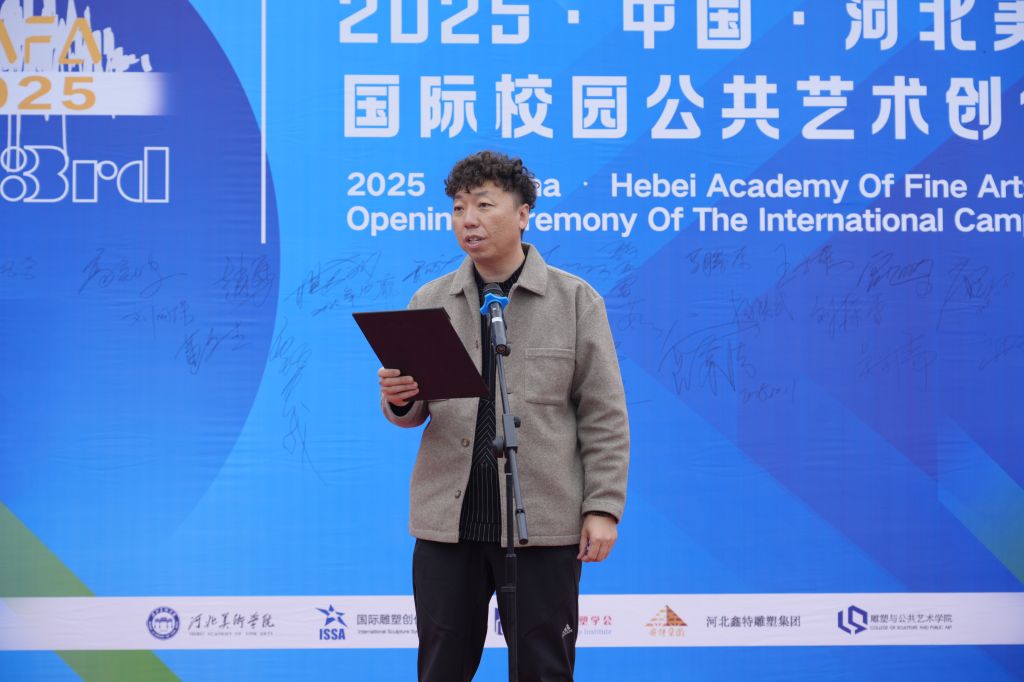10月11日,“2025·第三届河北美术学院国际校园公共艺术创作营”开营仪式在河北鑫特雕塑集团举行。曲阳县委相关县级领导和部门负责人出席;我校理事长张丽、校长甄忠义、副校长张子言,国际交流与合作中心主任兰新成,雕塑与公共艺术学院院长甄亚雷等参加仪式。仪式由中国曲阳雕塑文化产业园党工委书记、管委会主任王谞昭主持。