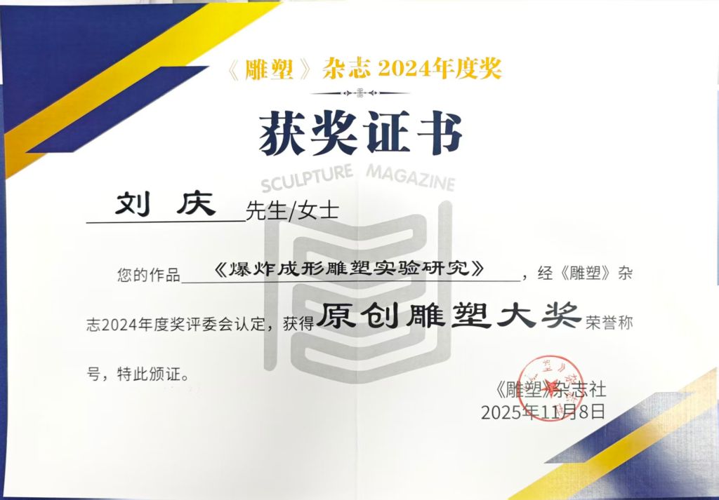 《雕塑》杂志年度大奖获奖证书